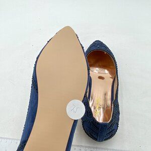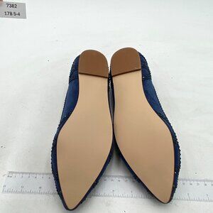 XYD Navy Pointed Toe Rhinestone Slip On Low Heel Crystal Embellished Shoes