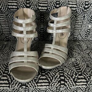 New Life Stride Silver “Mallie” Heels-Size 9W