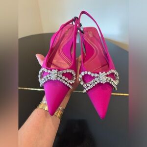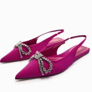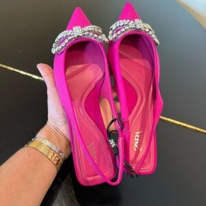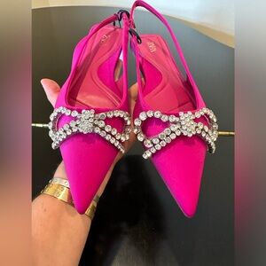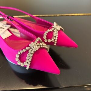 Zara Luxury Spring Summer Wedding Embelished Bejeweled Bow slingback mules/shoes