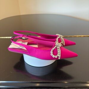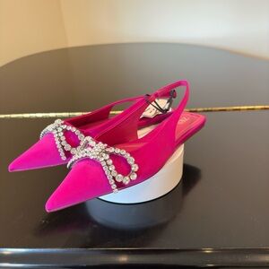 NWT Zara Luxury Summer Wedding Embelished Bejeweled Bow slingback mules/shoes