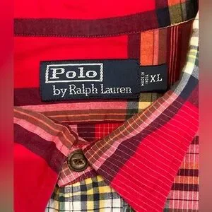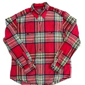 Preowned Polo Ralph Lauren Men's All Cotton Classic Fit Western Red Plaid Long Sleeve Shirt XL in excellent condition.