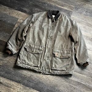 Vintage Carhartt Jacket Size Large Grey Barn Coat Chore 90's Outdoors Full Zip