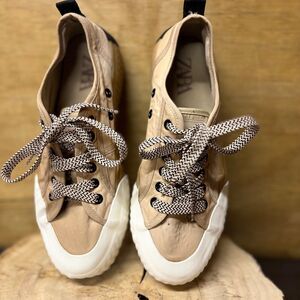 Zara Platform Sneakers Shoes Size US 9 EU 40 Canvas Cap Toe Textured Sole Casual