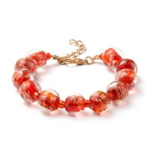 Red colored Murano style beautiful and vibrant set of a bracelet and a pair of matching earrings.
