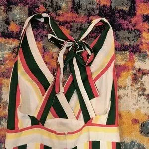 NWT LuLus My Passions White and Green Multi Stripe Halter Dress. Size Small. Depending on your height this would fit knee-length or midi.