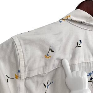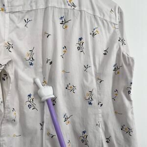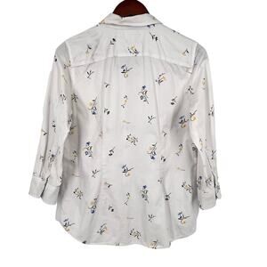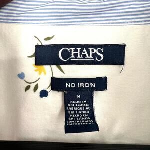 Ralph Lauren Chaps Womens Sz Medium No Iron Soft Flowers White Button Shirt Top