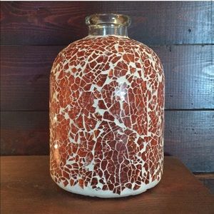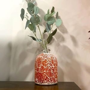 NEW Orange White Crackle Glass Vase