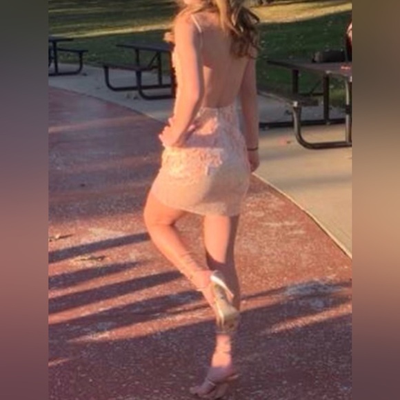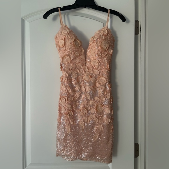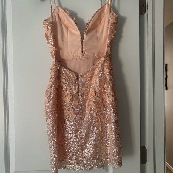 Jovani backless dress in peach, size zero. Super cute, backless dress. Worn only once! Smoke free home.