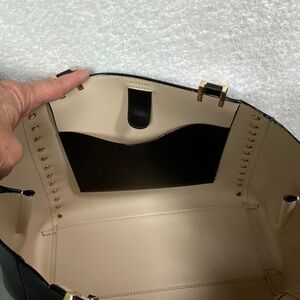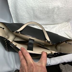 • Approx. 14.25"L X 11"H X 4.25"D with 9" dual drop handles that are black and beige