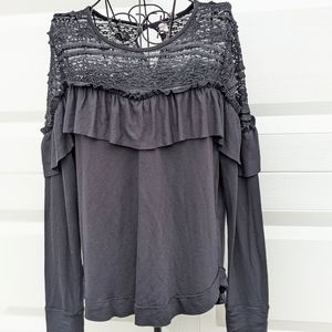 Merlose and Market Bohemian Black Lace Long Sleeve Top Size S