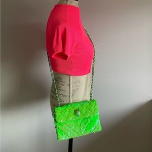 -Neon green sequined Kurt Geiger Bag. Adjustable strap. NWOT so In great condition