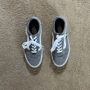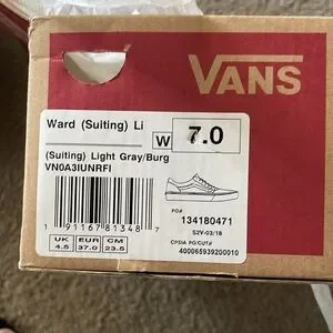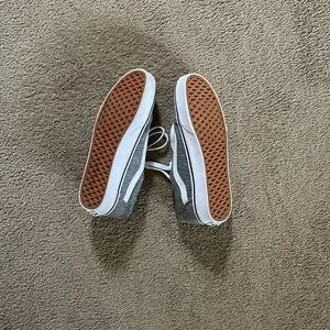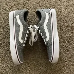 LIKE NEW VANS SNEAKERS IN A LIGHT GREY/ BURGUNDY COLOR… only worn twice!!! Been stored in the box!! Smoke free and pet free home!!