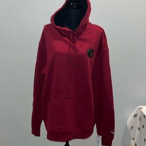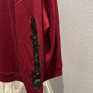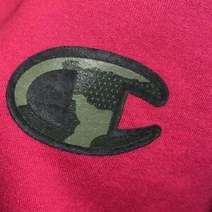 Mens Cozy up with this champion hoodie, cranberry in color with camo writing