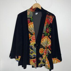 MOONLIGHT Y & S Fashion Jacket Black Floral Asian Art to Wear Lagenlook Size XL USA