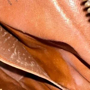 Great condition for vintage piece. Made in France April 1987. Slight interior pocket markings on inside pockets but no stickiness or peeling. Clean inside, no peeling or stickiness. Outside pocket clean, no stickiness or peeling. Rivet holes aged by proctors owner and can be added on to make into crossbody, but not included, see photo.