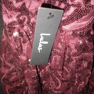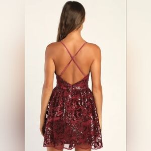 NWT Lulu's Sweetest Celebrations Wine Red Sequin Skater Mini Dress Size Medium