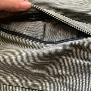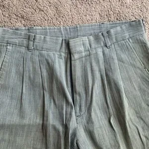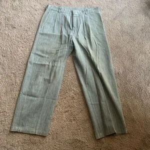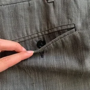 Men’s grey dress pants with pockets and a black zipper. Size small
