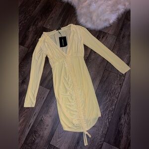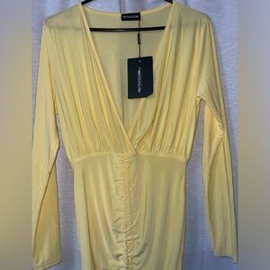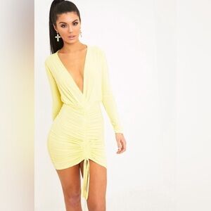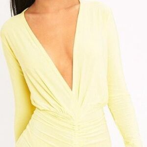 NWT💫 PLT Oriana lemon plunge rushed bodycon dress