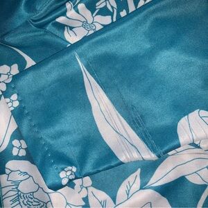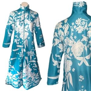 Blue maxi robe, house dress, mumu with stunning white floral print, tropical, Asian & mod vibes, so beautiful in person 💙🌸 can also be worn as dress
