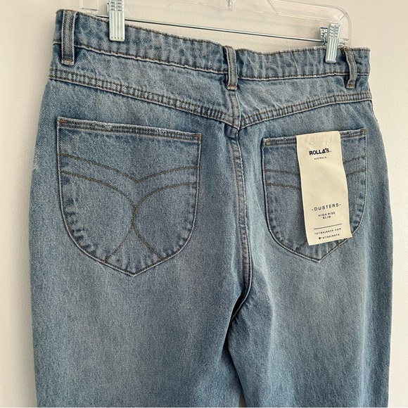 Slip into these new with tags Rolla’s Dusters High Rise Slim Jeans in Old Stone, designed with rigid denim that provides a flattering hold through the tummy and waist. Featuring Rolla’s signature back pocket stitching and a specially angled fit for a peachy bum look, these jeans may feel snug at first but will soften with wear.