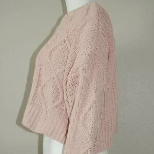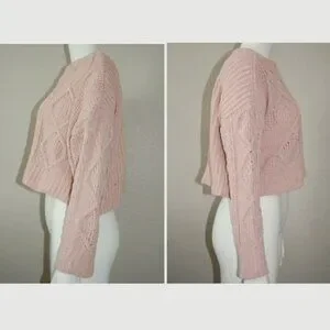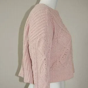 Arizona Jean Co, Women Size M, Cable Knit Crew Neck Crop Top Sweater, Dusty Pink