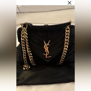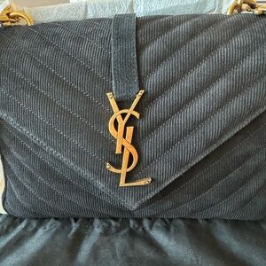 Saint Laurent Medium College Black Corduroy Shoulder bag