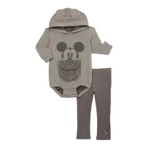 Disney Baby Mickey Mouse Hooded Bodysuit and Pants 2-Piece Outfit Set NWT