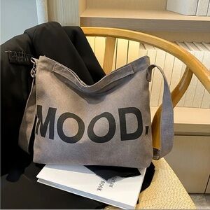 As seen on TikTok - Perfect bag for everyday use Spacious Multi-Layer Canvas Shoulder Handbag. Durable, Water-Resistant, and Comfortable for Unisex Commute, Fitness, and Outdoor Activities. In color gray with black lettering. Shoulder bag, crossbody or satchel.