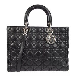 Christian Dior Black Lambskin Lady Dior Cannage 2way Handbag