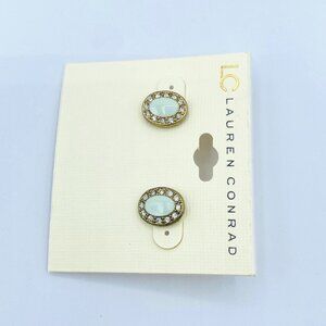 LC Lauren Conrad Blue Goldtone Rhinestone Oval Stud Earrings New