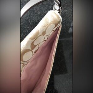 Coach Cream Tan Canvas Leather Trimmed Wristlet Wallet