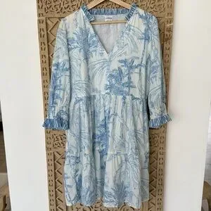 Charleston Shoe Company Charlee Alexis Dress Blue Tropical Pattern Size Medium