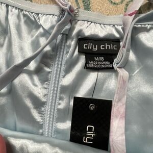 NWT City Chic blue and white ombre dress with pink floral pattern. City Chic size medium which is equivalent to an 18.