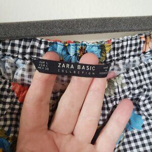 Zara Top Tunic Off Shoulder Bell Sleeves Floral Gingham L Cotton Ruffle