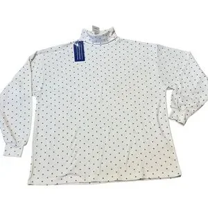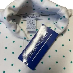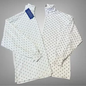 2pc turtleneck bundle. Both tops are white. One has black polka dots and the other has turquoise green polka dots.