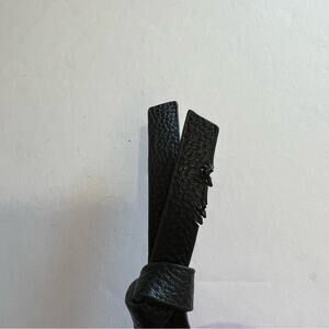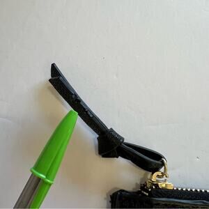New & unused but has some rips on the zipper pull (see photos) and fraying threads at the top of strap near clasp.