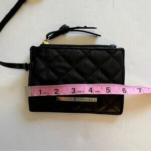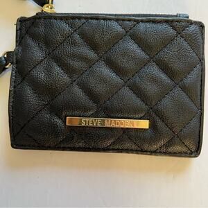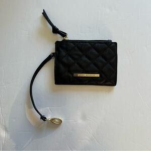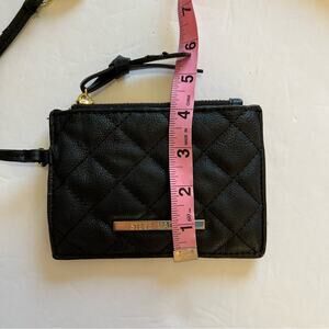 Steve Madden Coin Purse Quilted Black Faux Leather with Strap Small Wallet