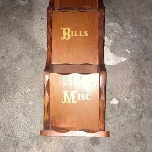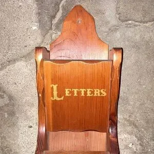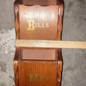 📬✉️ Vintage 1970s / 1980s Straw Wooden Gold Ink Wall Organizer for Mail 📦📭