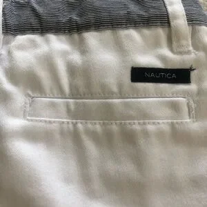 1) Nautica white button up with blue white striped band. Adjustable waist.
