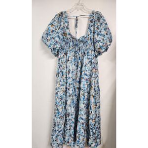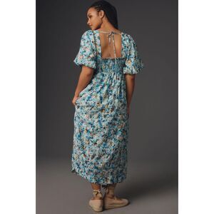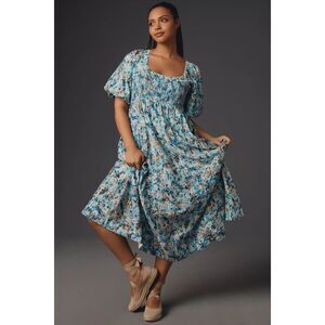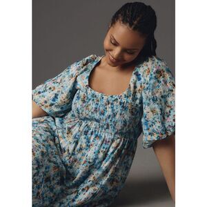 By Anthropologie Short-Sleeve Smocked Babydoll Midi Dress Size XL.