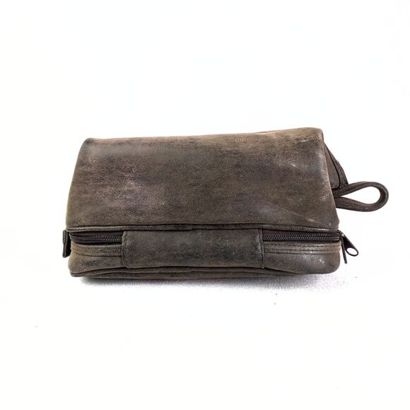 Exterior: Brown Faux Leather. Top Zip Main Compartment. Front Top Zipped Pocket. Bottom Zip Pocket.