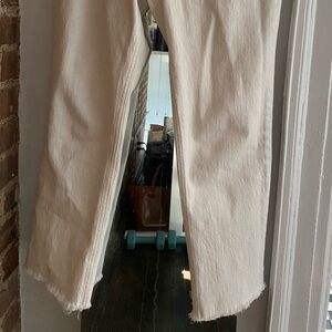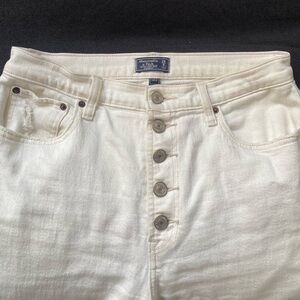 Abercrombie and Fitch ultra high rise straight white jeans (short) with button detailing and raw hem. In great condition.
