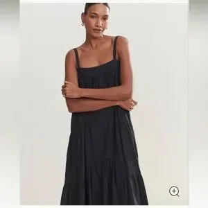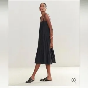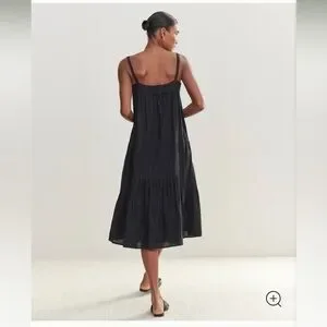 Gorgeous loose-fitting tiered sundress with elastic as the upper back for a custom fit.