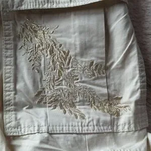 vintage khaki Calvin Klein jeans Capri joggers at cargo pants all around adorable size 8 petite beautiful embroidery detail on left leg pocket. zip up bottom elastic crop leg super cute. comfortable stylish pants in excellent condition