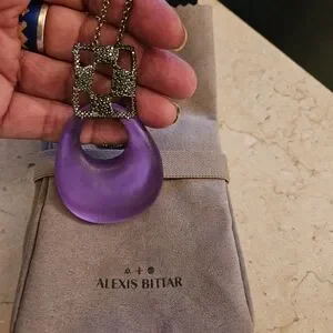 Alexis Bittar Purple Lucite necklace with gunmetal chain