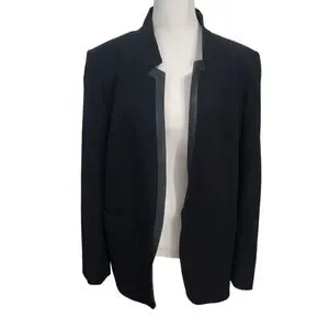 EUC Escada Black Leather Trim Wool Blend Babaasi Blazer