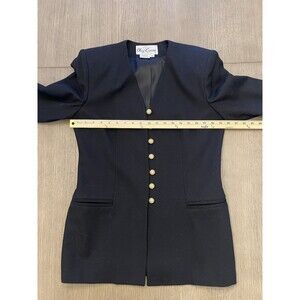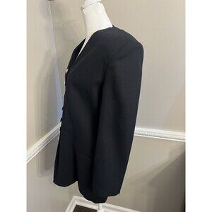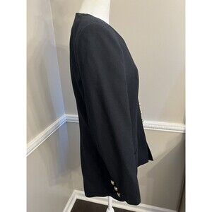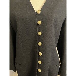 Vintage Oleg Cassini Blazer 100% Wool Black Gold Buttons Size 10