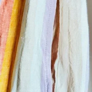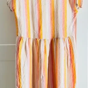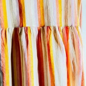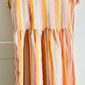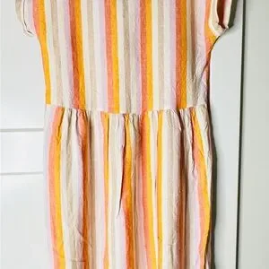 Lou & Gray by Loft v-neck striped pastel striped A-line midi dress with pockets! 100% linen, unlined. Short sleeves with cuffed pockets
