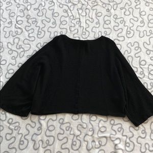 Excellent condition, minimal wear. Black in color and is textured. Wide sleeve and slightly cropped. Size M.