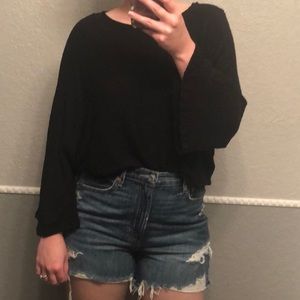 Anthropologie Maeve Black Wide Sleeve Crop Top